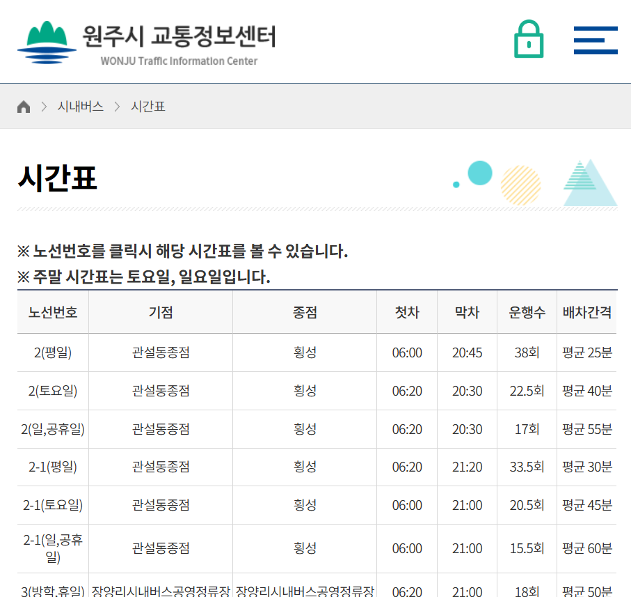 원주 시내버스의 시간표와 노선 정보를 확인할 때는 원주시 교통정보센터 사이트가 제일 간편합니다. 이곳에서는 실시간 버스 정보, 노선 검색, 정류장 검색 등의 다양한 정보를 볼 수 있습니다.